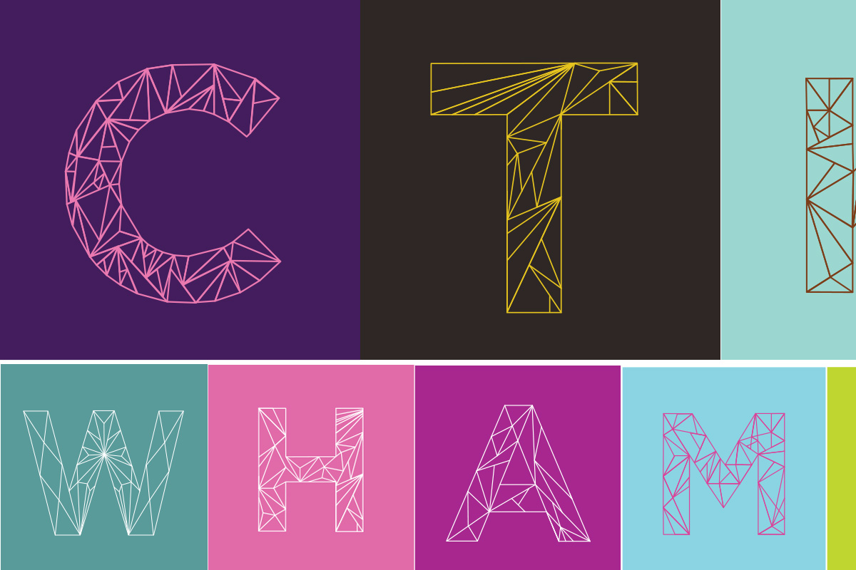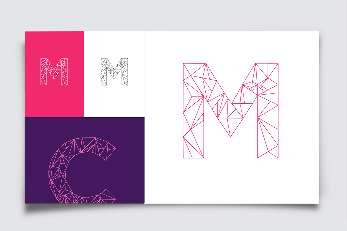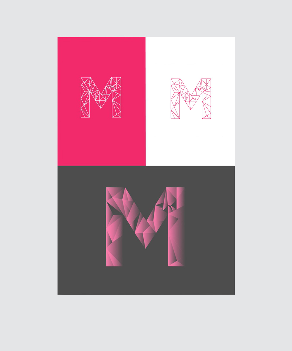 This is the letter 'M' from a geometric typographic series created as a give back initiative for my co-workers. Below is a collection of letters that were custom drawn in Adobe Illustrator to match individuals personalities through the use of diagonal lines and bold colors.